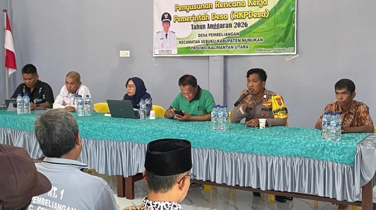 Dalam rangka mendukung terwujudnya perencanaan pembangunan desa yang partisipatif dan tepat sasaran, Bhabinkamtibmas Desa Pembeliangan Polsek Sebuku, Brigpol Rachmad Putra Sumitra, menghadiri kegiatan Musyawarah Perencanaan Pembangunan Desa (MusrenbangDes) yang dilaksanakan di Aula Desa Pembeliangan, Kecamatan Sebuku, Kabupaten Nunukan, pada Kamis (4/9/2025).